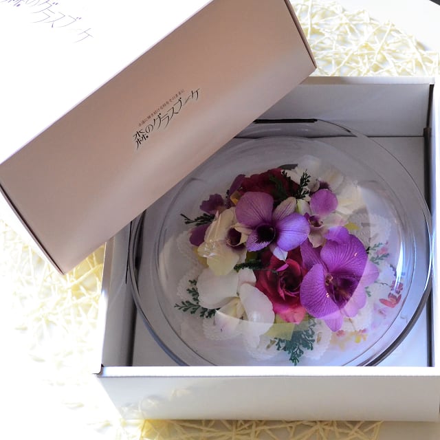 素敵なガラスケースに生花本来の美しさを収めました。